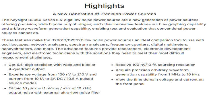 KEYSIGHT B2960 Series 6.5 Digit Low Noise Source Power Supplies