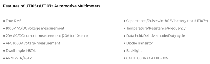 UNI-T UT105+/UT107+ Automotive Multimeters