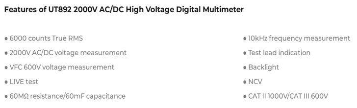 UNI-T UT892 2000V AC/DC High Voltage Digital Multimeter