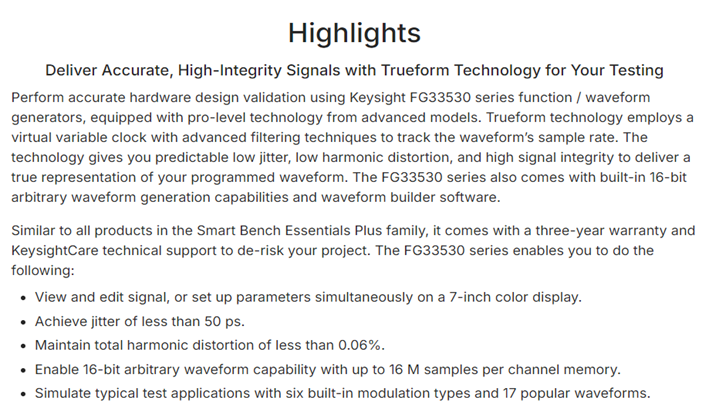 KEYSIGHT FG33530 Series Waveform and Function Generator