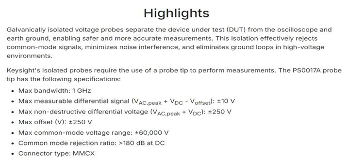 KEYSIGHT PS0017A Isolated Probe Tip, ± 10V, MMCX