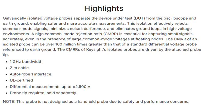 KEYSIGHT PS0008A Optically Isolated Differential Probe, 1 GHz, 2-meter