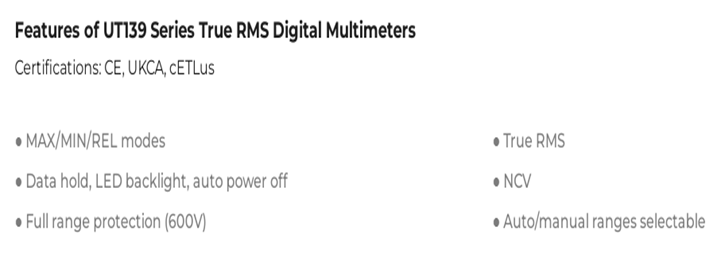 UNI-T UT139 Series True RMS Digital Multimeters