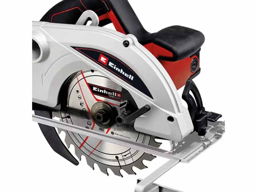 The Einhell TC-CS 1410 hand-held circular saw offers an impressive combination of easy handling and 1,410 W of power. This hand-held circular saw is recommended when excellent performance in combination with easy handling is required. The user-friendly hand-held circular saw can be used to perform a wide range of sizing cuts in a variety of materials with ease and is suitable for all sorts of assignments. Hand-held circular saws are ideal for long, straight and accurate cuts. For even greater precision it can be used in combination with the compatible guide rail system from Einhell. The cutting depth and tilt angle are adjusted without the need for any tools, and changing the saw blade is also just as easy thanks to the spindle locking system. The product is supplied complete with the high-grade carbide saw blade for clean and straight cuts. Saw blades with an internal diameter of 30 mm are compatible with the hand-held circular saw. The maximum cutting depth at an angle of 45° is 46 mm and the cutting depth at an angle of 90° is 67 mm. The large additional handle enables operation without fatigue even on long work sessions. There is also a splitter for extra safety during operation. The hand-held circular saw has a dust extraction connection for compatible devices to help keep the workplace clean.