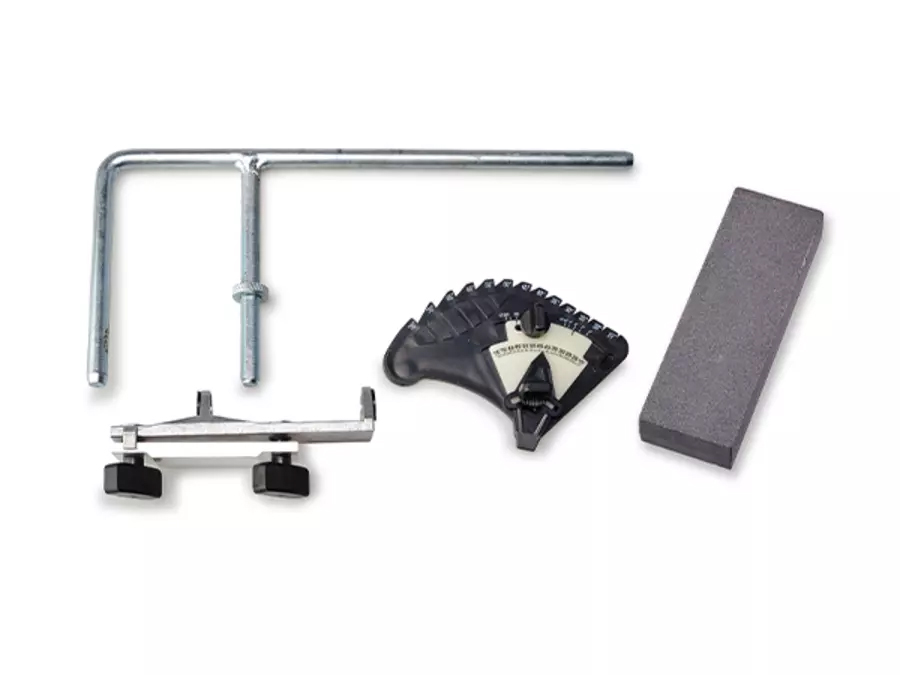 With its large support surface, the sanding support ensures that tools can also be placed stably on the sanding wheel over a longer period of time. A grindstone for adjusting the sanding wheel grain,a leather strippingwheel and an angle gauge are included.