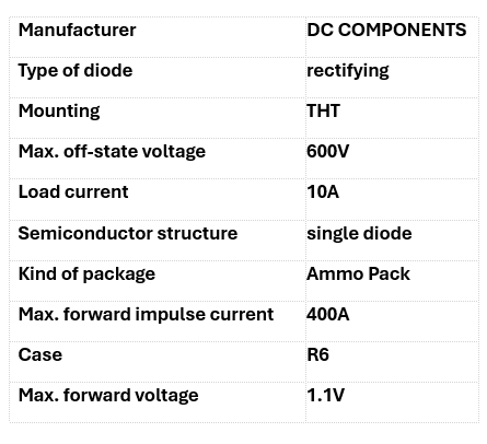 DC - 10A6-BP 10A 600V R-6 DIODE RECTIFIER