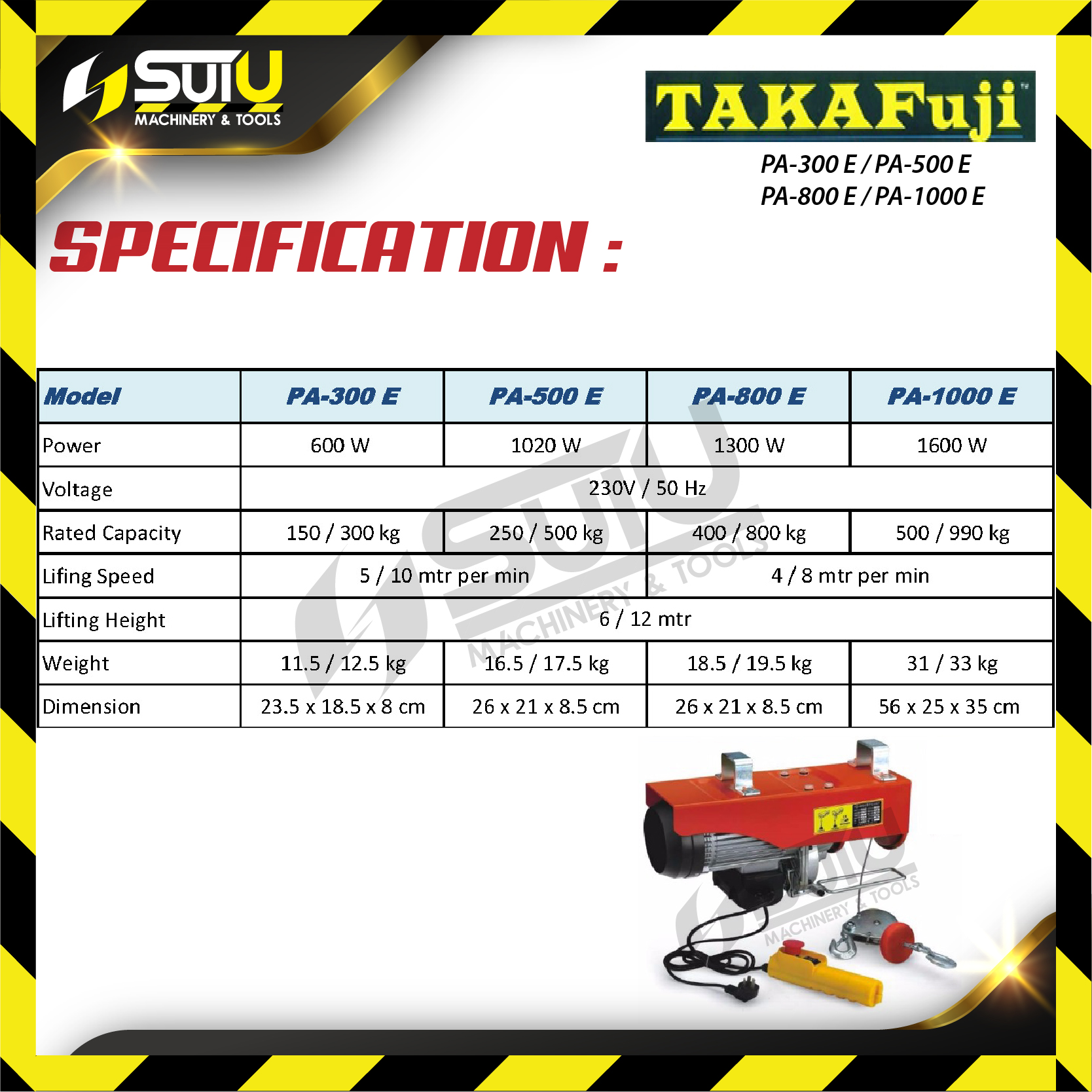 - Lifting Speed : 5/10 mtr per min