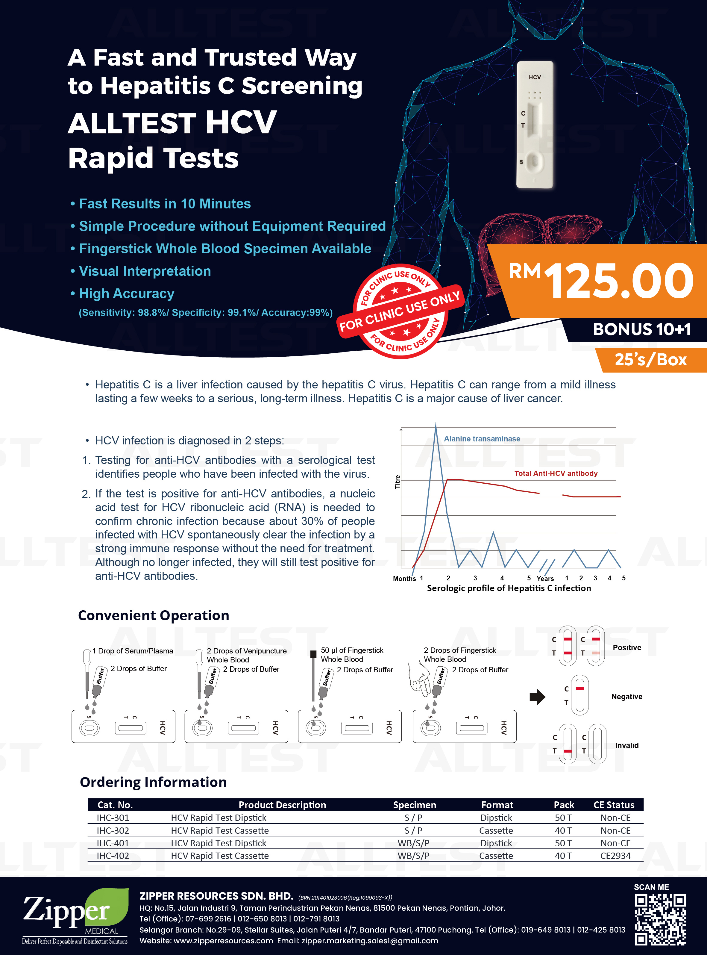ALLTEST HCV (Hepatitis C Antigen) Rapid Test (25’s/Box)