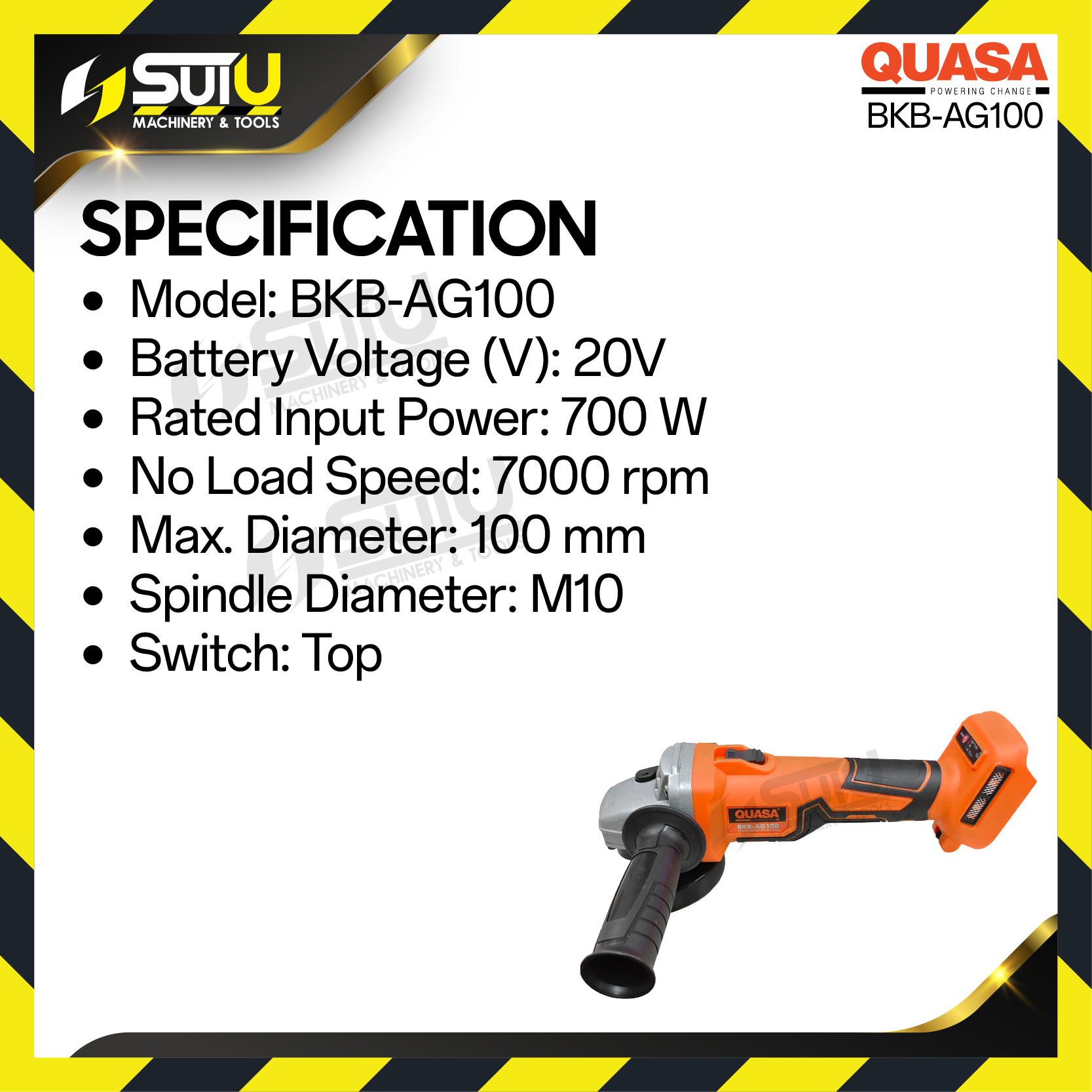 [4.0Ah] QUASA BKB-AG100 20V 4" / 100MM Cordless Angle Grinder 700W w/ 2 x Battery 4.0Ah + Charger