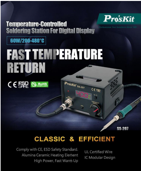 Soldering iron handles are insulated and ergonomic-designed for ease