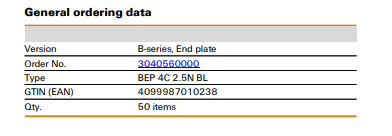 WEIDMUELLER 3040560000 BEP 4C 2.5N BL B-Series Push In Terminal Block