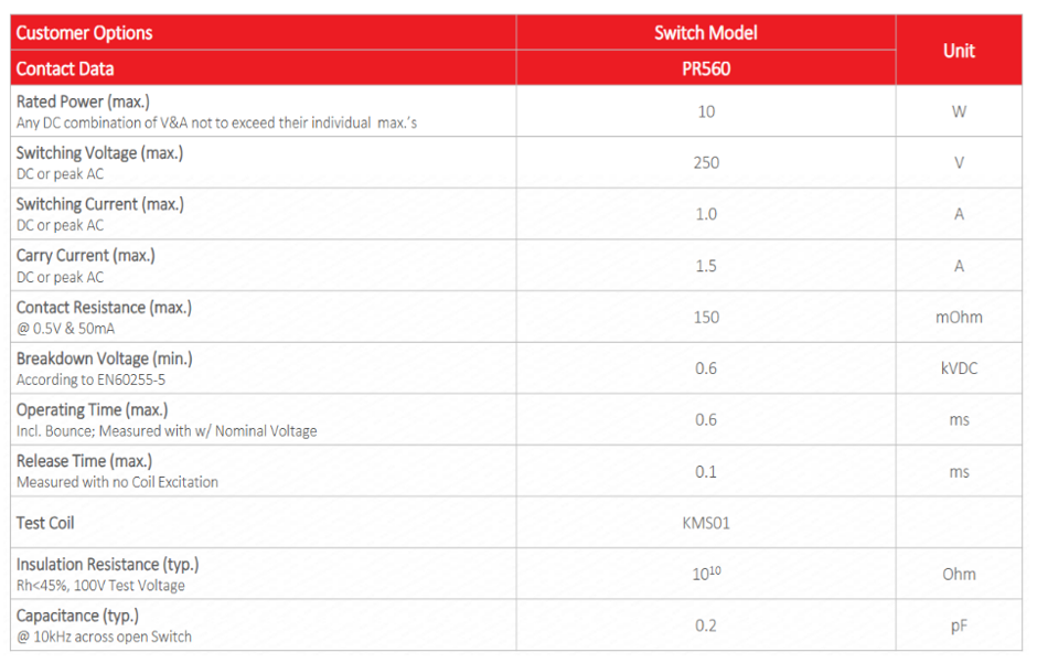 STANDEX-MEDER PR560 SERIES REED SWITCH