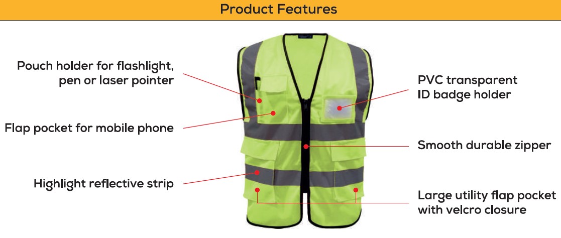 * Be seen and be safe with CRSV reflective safety vest with pocket.