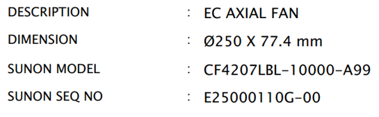 SUNON CF4207LBL-10000-A99 250x77 MM (IP21/IP55) MAGLEV EC AXIAL FAN