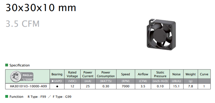 SUNON HA30101V3-10000-A99 30x30x10MM MAGLEV MOTOR FAN
