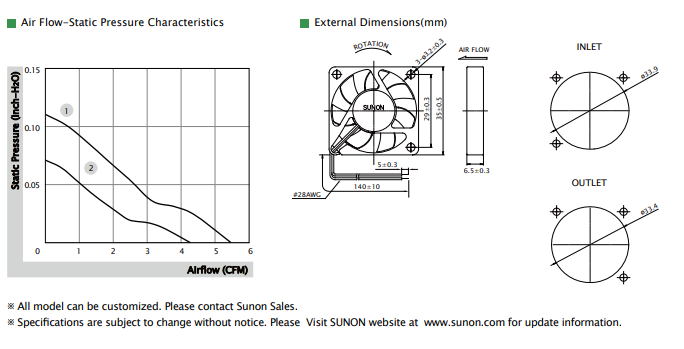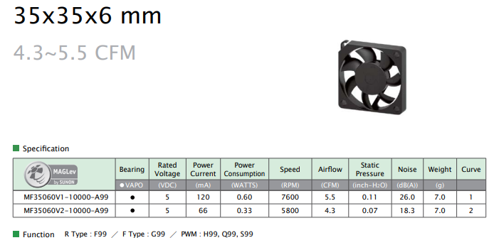 SUNON MF35060V1-10000-A99 35x35x6MM MAGLEV MOTOR FAN