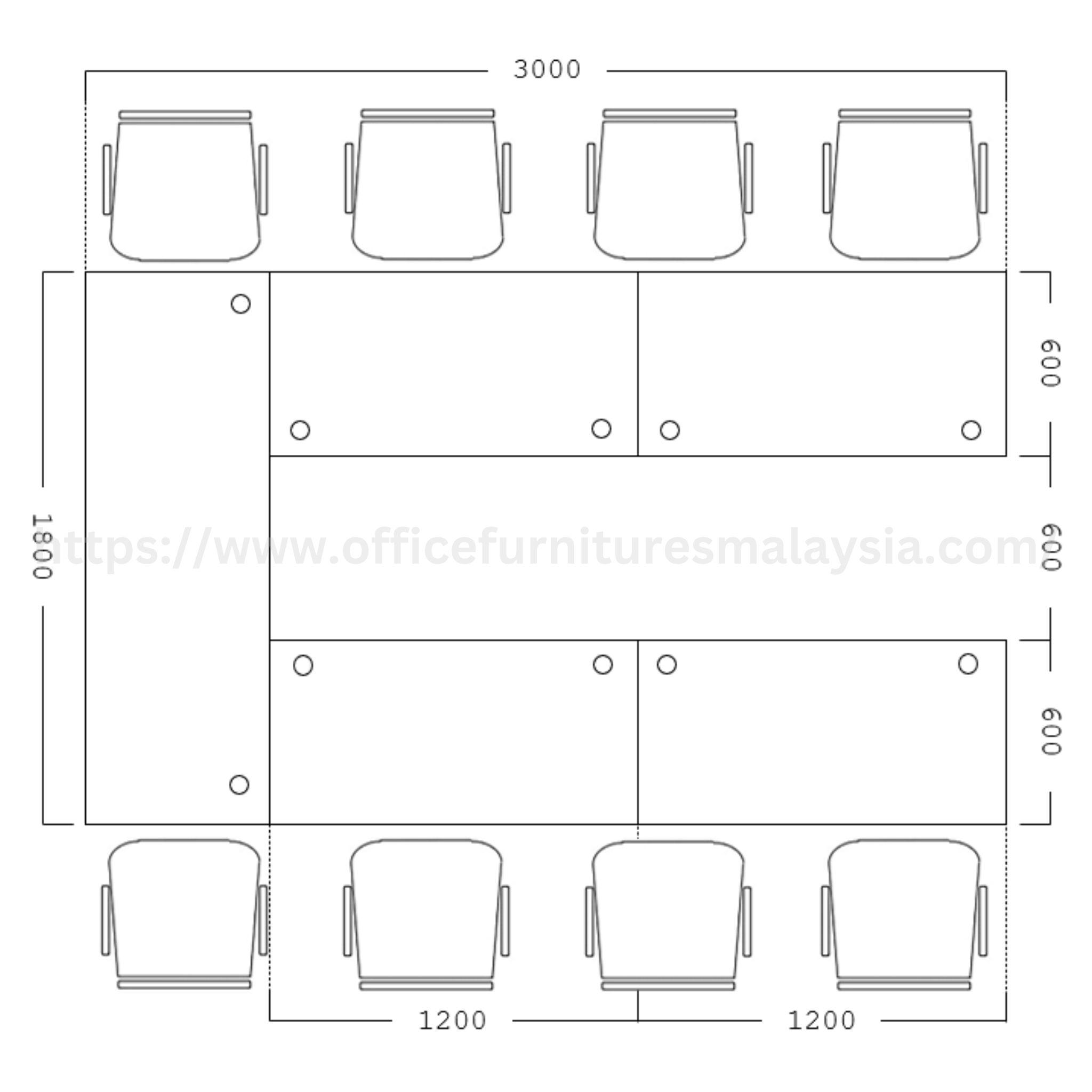 • 1 x Conference Table Size : W 3000 mm x D 1800 mm x H 750 mm