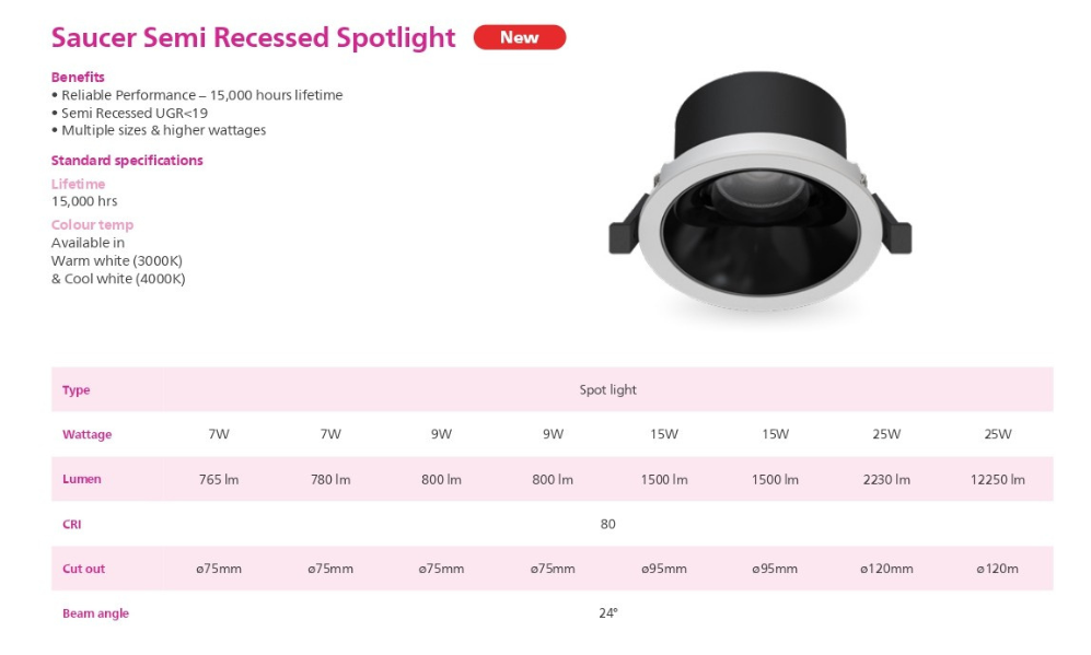 Upgrade your lighting experience with the (NEW) Philips RS216 LED Saucer Semi Recessed Spotlight — a perfect fusion of elegant design, bright illumination, and Philips’ proven LED innovation. Ideal for those seeking modern lighting with performance that lasts.