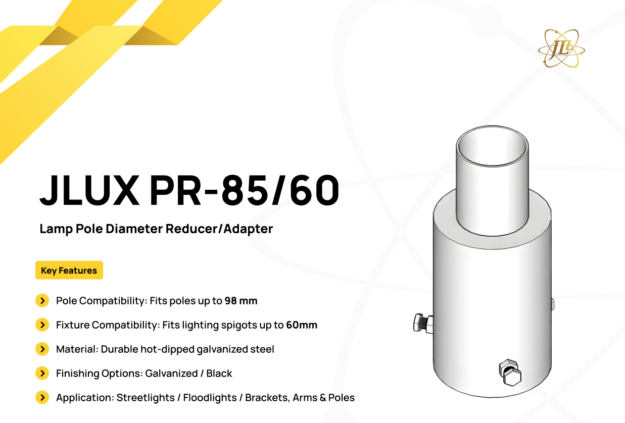 The JLUX PR-85/60 is the ideal solution for installers and contractors looking for a safe, durable, and corrosion-resistant pole diameter reducer that ensures perfect fitting and long-term stability at an affordable price.