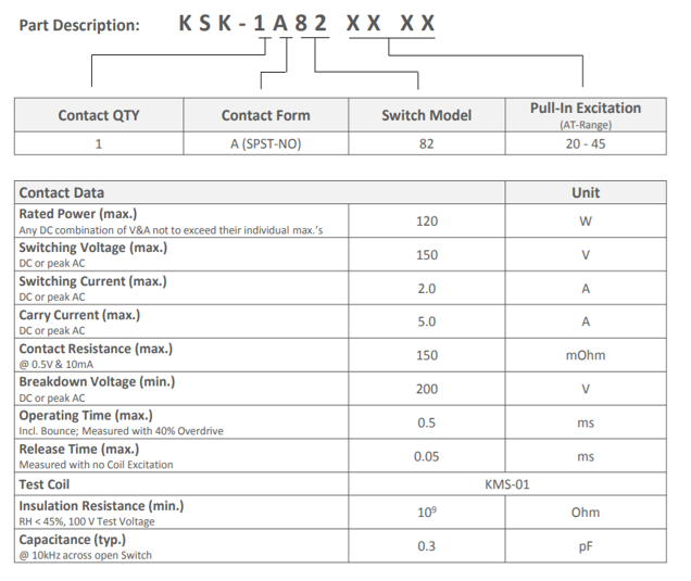Standex KSK-1A82 Series Reed Switch