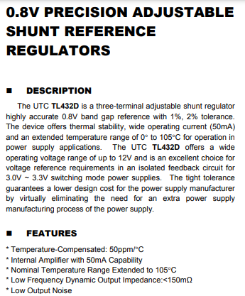 UTC TL432D PRECISION ADJUSTABLE REGULATORS