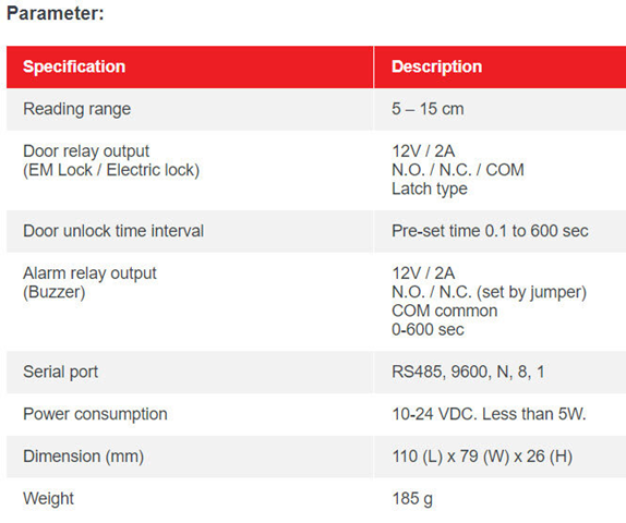 More secure Built-in tamper-proof function to alert you on software if someone removed or vandalize the reader. The alarm function will alert you with an external buzzer if the door is not fully closed or someone opens the door by force without flashing a valid card. AR725E uses a patented anti-vibration relay design that prevents intruders to open your door by just knocking hard onto the reader. If you are using AR725E Desfire, you can encrypt the reader and Desfire card to eliminate the card cloning problem. Encrypted Desfire card will only recognize the reader encrypted with the same master card (containing the encryption key).