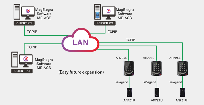 Easy to add more readers You can connect AR725E to any nearest existing network point to save money on wiring. This makes it easier to add more readers as you expand the system.