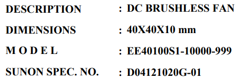 EE40100S1-10000-999 40x40x10MM DC BRUSHLESS FAN