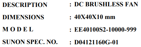 SUNON EE40100S2-10000-999 40x40x10MM DC BRUSHLESS FAN