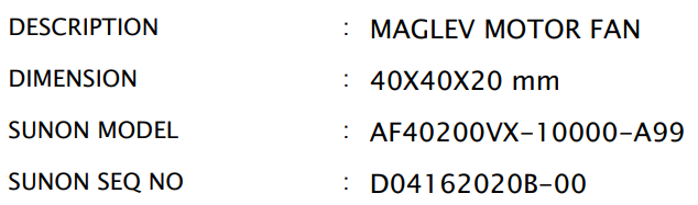 SUNON AF40200VX-10000-A99 40x40x20MM MAGLEV MOTOR FAN