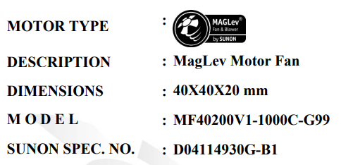 SUNON MF40200V1-10000-A99 40x40x20MM MAGLEV MOTOR FAN