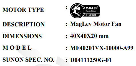 SUNON MF40201VX-10000-A99 40x40x20MM MAGLEV MOTOR FAN