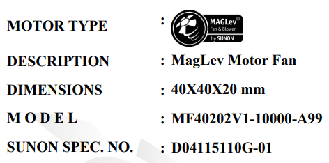 SUNON MF40202V1-10000-A99 40x40x20MM MAGLEV MOTOR FAN