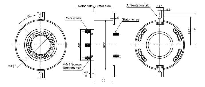 The through bore slip ring can be used for shaft installation or through gas-liquid catheter.