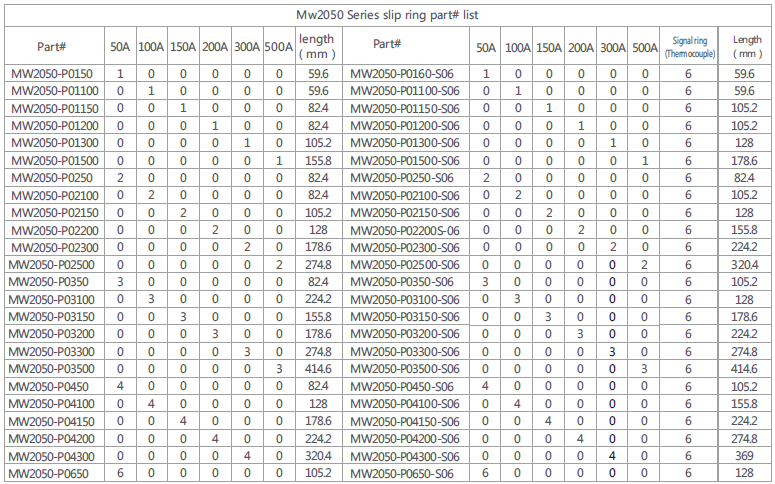 MW2050 series is large current slip ring with bore diameter 50mm.