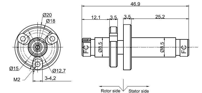 MFO series fiber optic slip ring is an optic+electromechanical device that allows the transmission of power and fiber optic signals