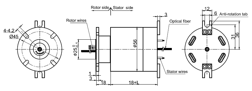 Also can be combined with electric slip ring to transmit power and high-speed data too.