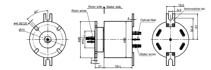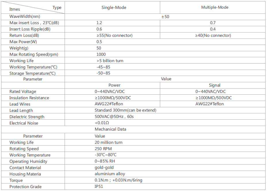 It can perfectly transmit data on 360° rotating. It is also especially suitable for occasion where it needs to transmit large volume data/signal from permanent position to rotation position on unlimited, continuous or discontinuous rotating, which can improve mechanical property, simplify system operation and avoid the rotating of turning joints destroy fiber optics.